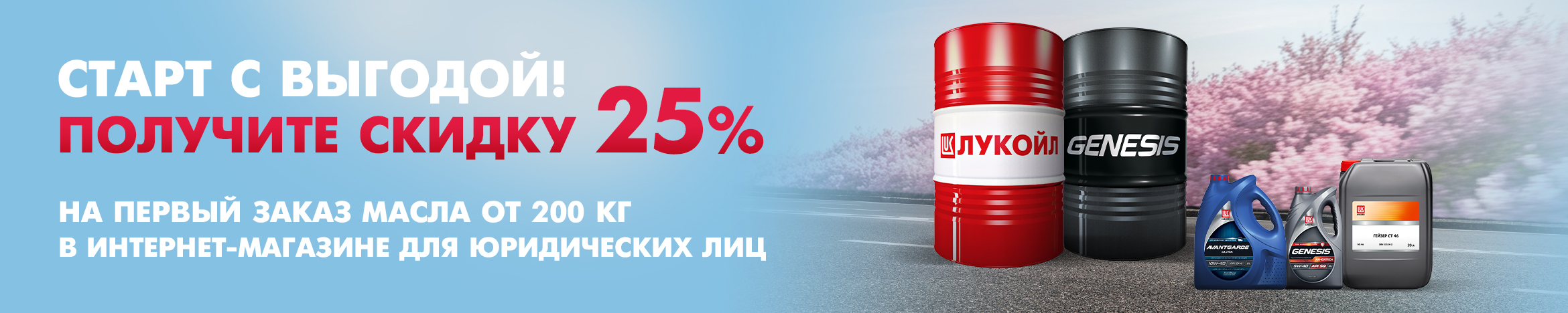 - Скидка до 25% предоставляется новым клиентам интернет-магазина https://b2b.lukoil-shop.ru на первый оформленный заказ от 200кг.;
